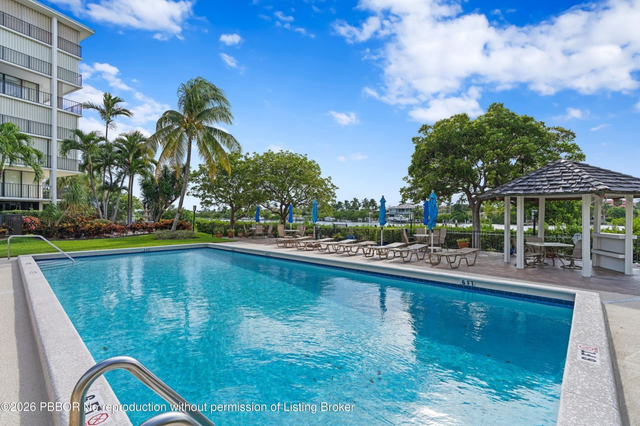 Sunny 2 bedroom 2 bath with Intracoastal views from living room and primary bedroom. Property is convenient to Eau Palm Beach Resort and Plaza del Mar shops and restaurants; A short drive to world class Worth Avenue shops, restaurants and entertainment. Priced to sell.